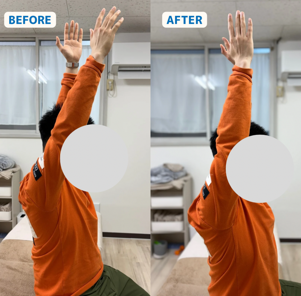 施術後の肩の可動域の変化!腕がまっすぐ上がるように!